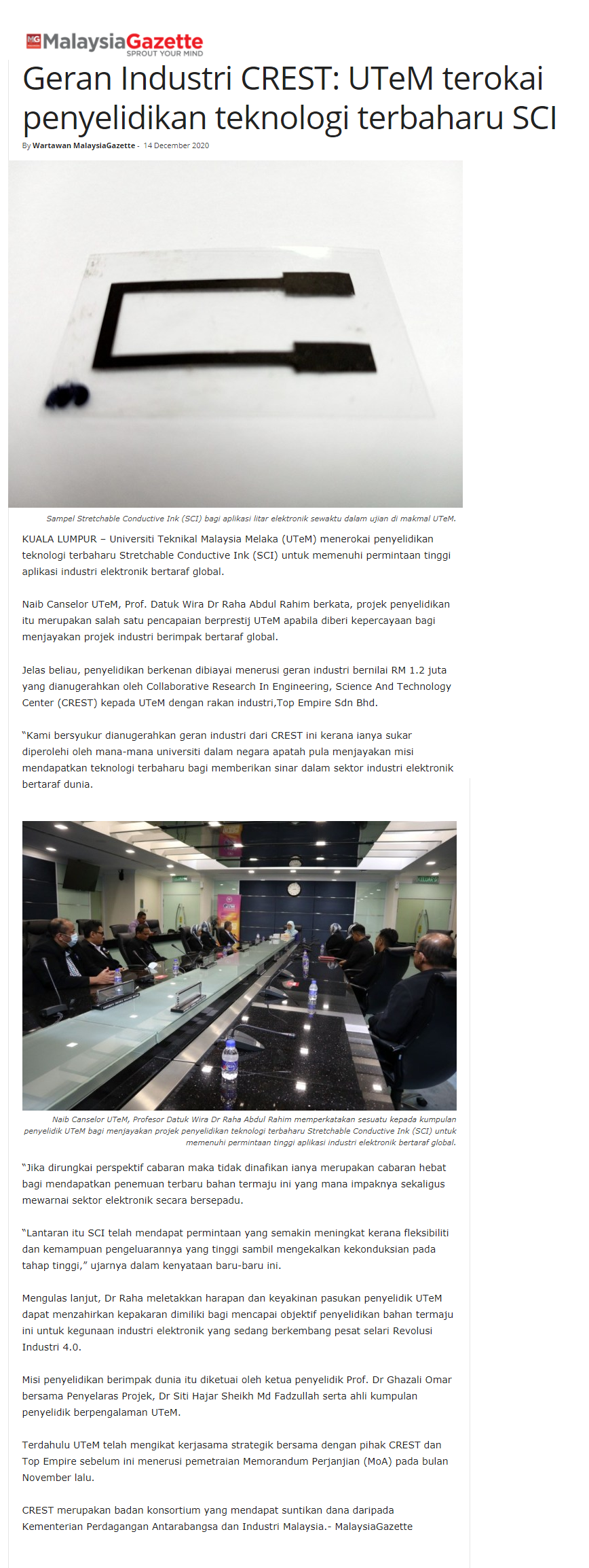 Geran Industri CREST: UTeM terokai penyelidikan teknologi terbaharu SCI