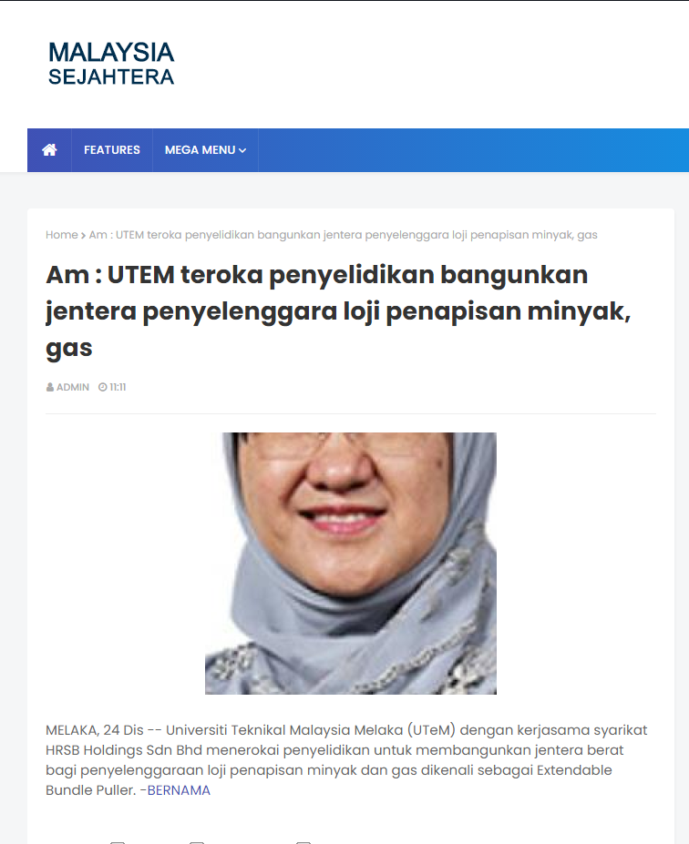 UTEM teroka penyelidikan bangunkan jentera penyelenggara loji penapisan minyak, gas