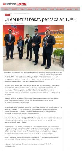UTeM iktiraf bakat, pencapaian TUAH
