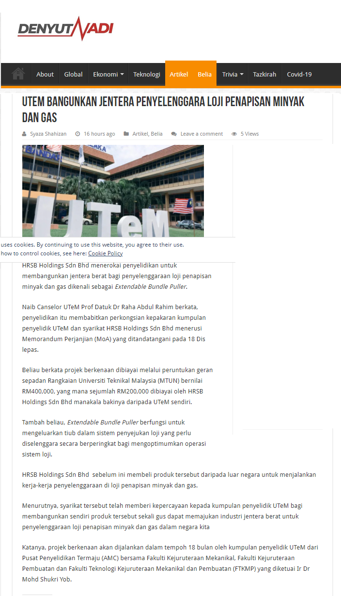 UTeM Bangunkan Jentera Penyelenggara Loji Penapisan Minyak Dan Gas