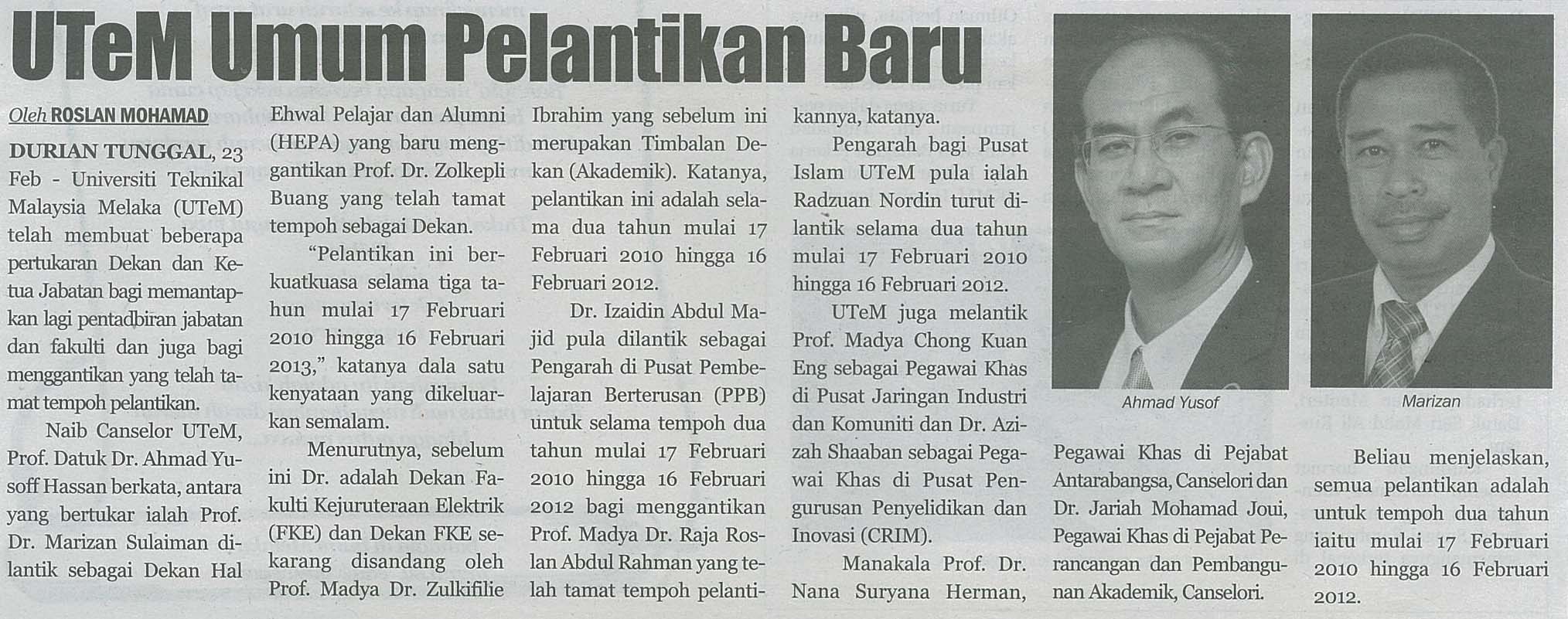 UTeM umum pelantikan baru