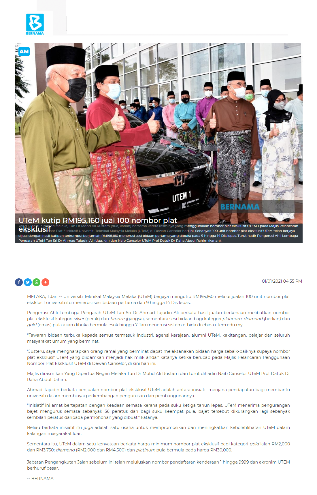 UTeM kutip RM195,160 jual 100 nombor plat eksklusif