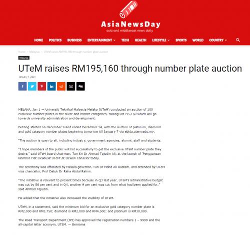 UTeM raises RM195,160 through number plate auction