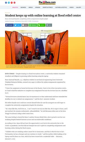 Student keeps up with online learning at flood relief centre