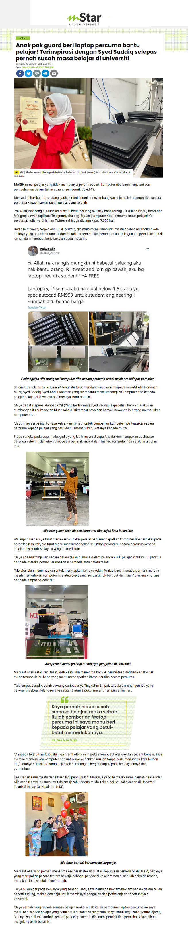 Anak pak guard beri laptop percuma bantu pelajar! Terinspirasi dengan Syed Saddiq selepas pernah susah masa belajar di university