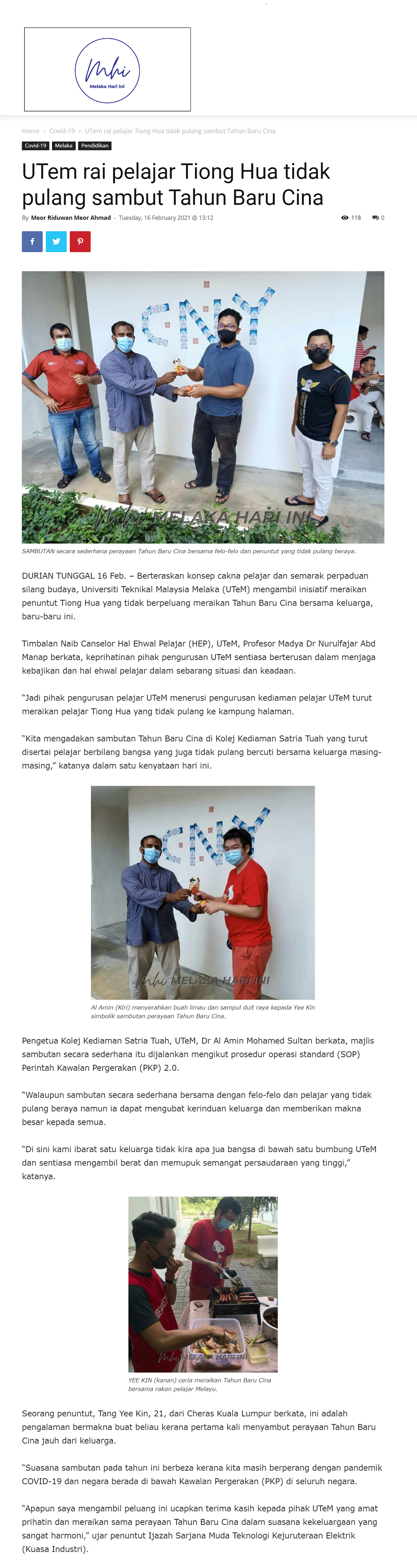 UTeM rai pelajar Toing Hua tidak pulang sambut Tahun Baru Cina