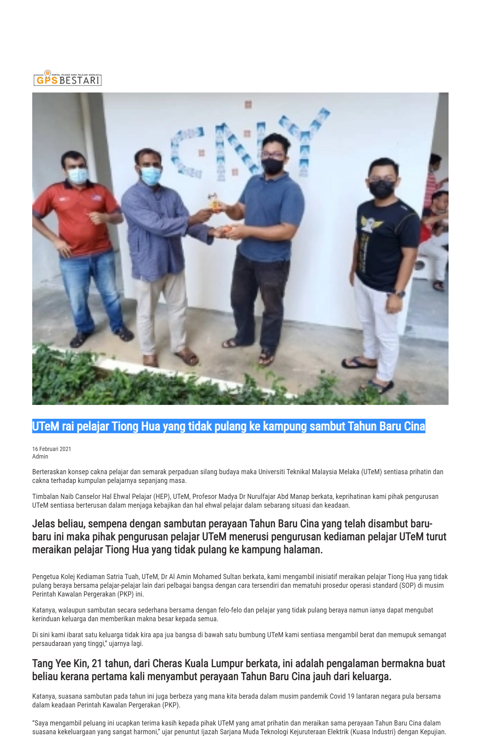UTeM rai pelajar Tiong Hua yang tidak pulang ke kampung sambut Tahun Baru Cina
