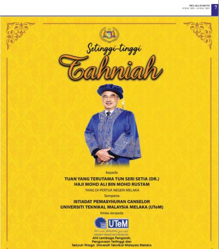 Setinggi - tinggi tahniah kepada Tuan Yang Terutama Tun Seri Setia (Dr.) Haji Mohd Ali bin Mohd Rustam