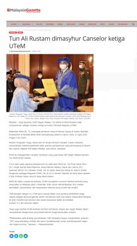 Tun Ali Rustam dimasyhur Canselor ketiga UTeM