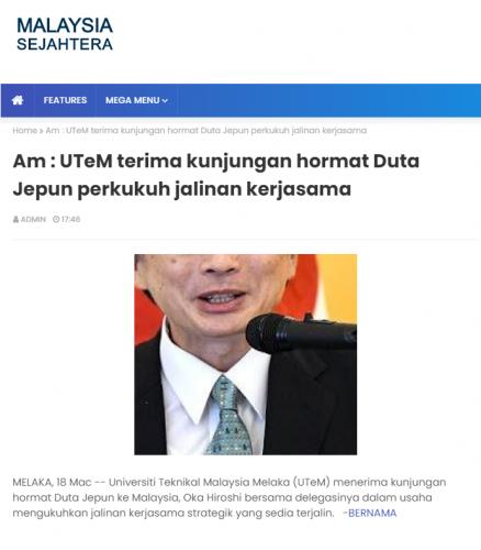 Am : UTeM terima kunjungan hormat Duta Jepun perkukuh jalinan kerjasama