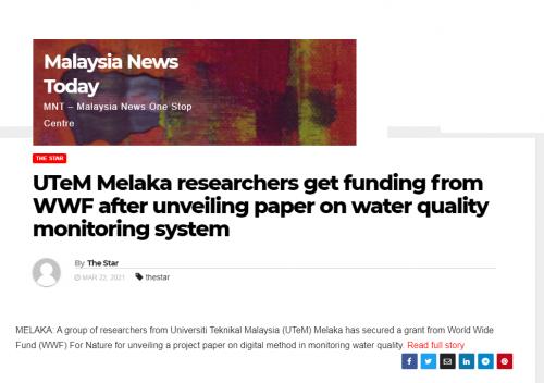 UTeM Melaka researchers get funding from WWF after unveiling paper on water quality monitoring system