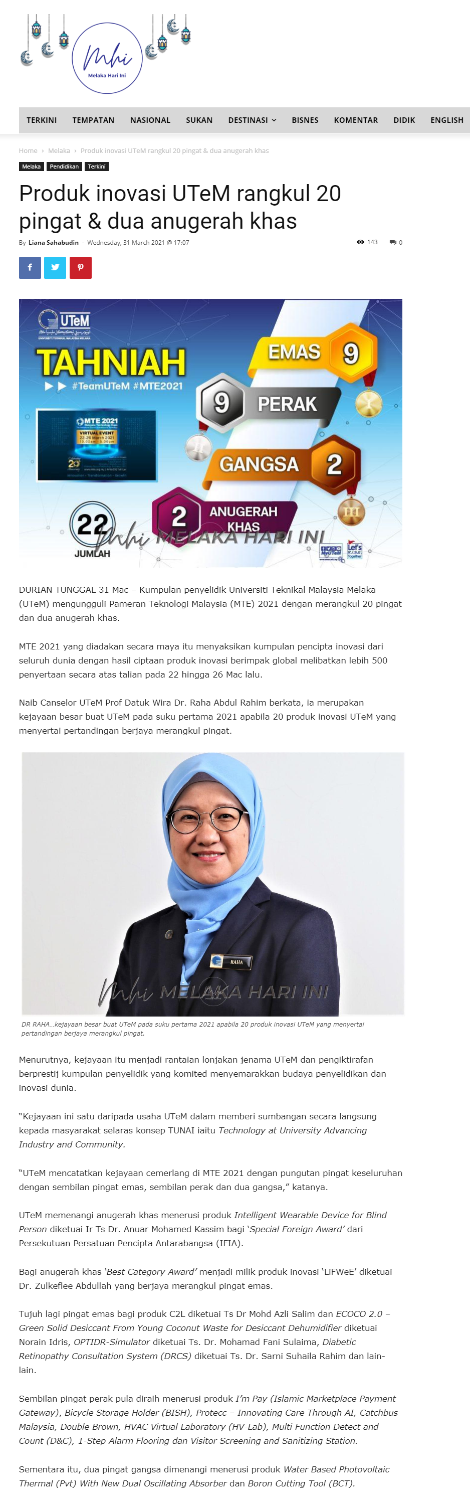 Produk Inovasi UTeM rangkul 20 pingat & dua anugerah khas