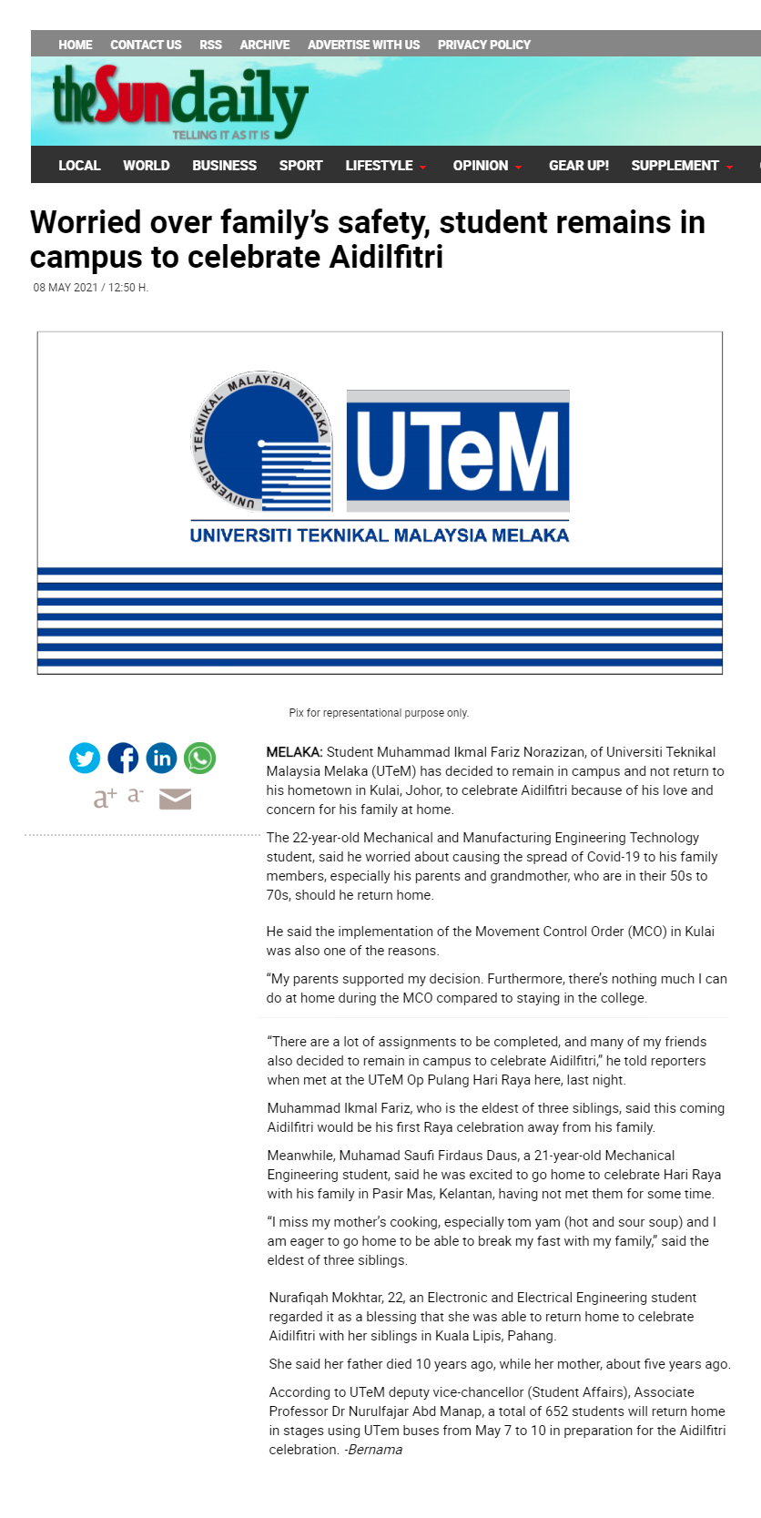 Worried over family’s safety, student remains in campus to celebrate Aidilfitri