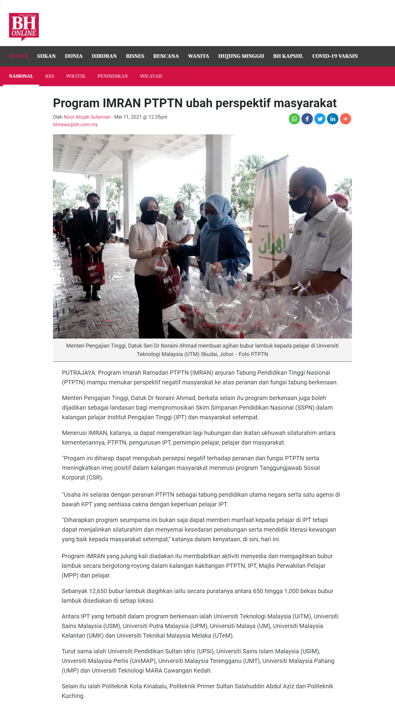 Program IMRAN PTPTN ubah perspektif masyarakat
