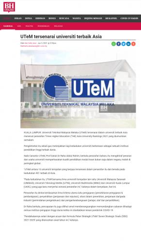 UTeM tersenarai universiti terbaik Asia