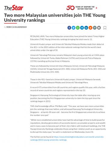 Two more Malaysian universities join THE Young University rankings