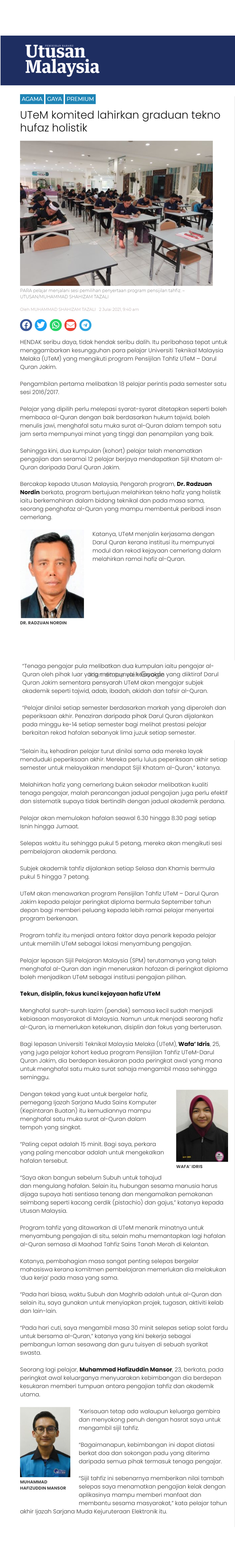 UTeM komited lahirkan graduan tekno hufaz holistic