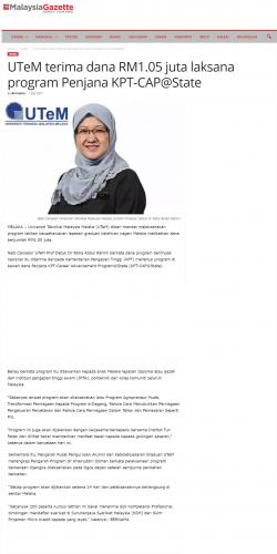 UTeM terima dana RM1.05 juta laksana program Penjana KPT-CAP@State