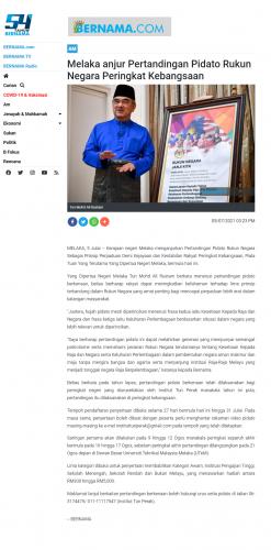 Melaka anjur Pertandingan Pidato Rukun NegaraPeringkat Kebangsaan