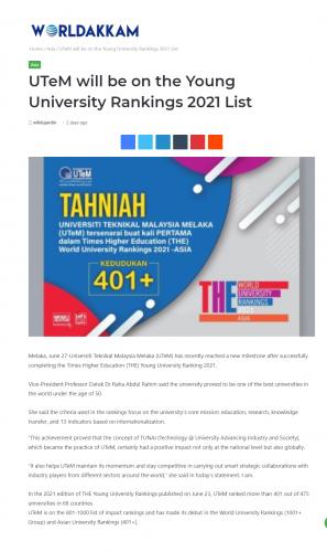UTeM will be on the Young University Rankings 2021 List