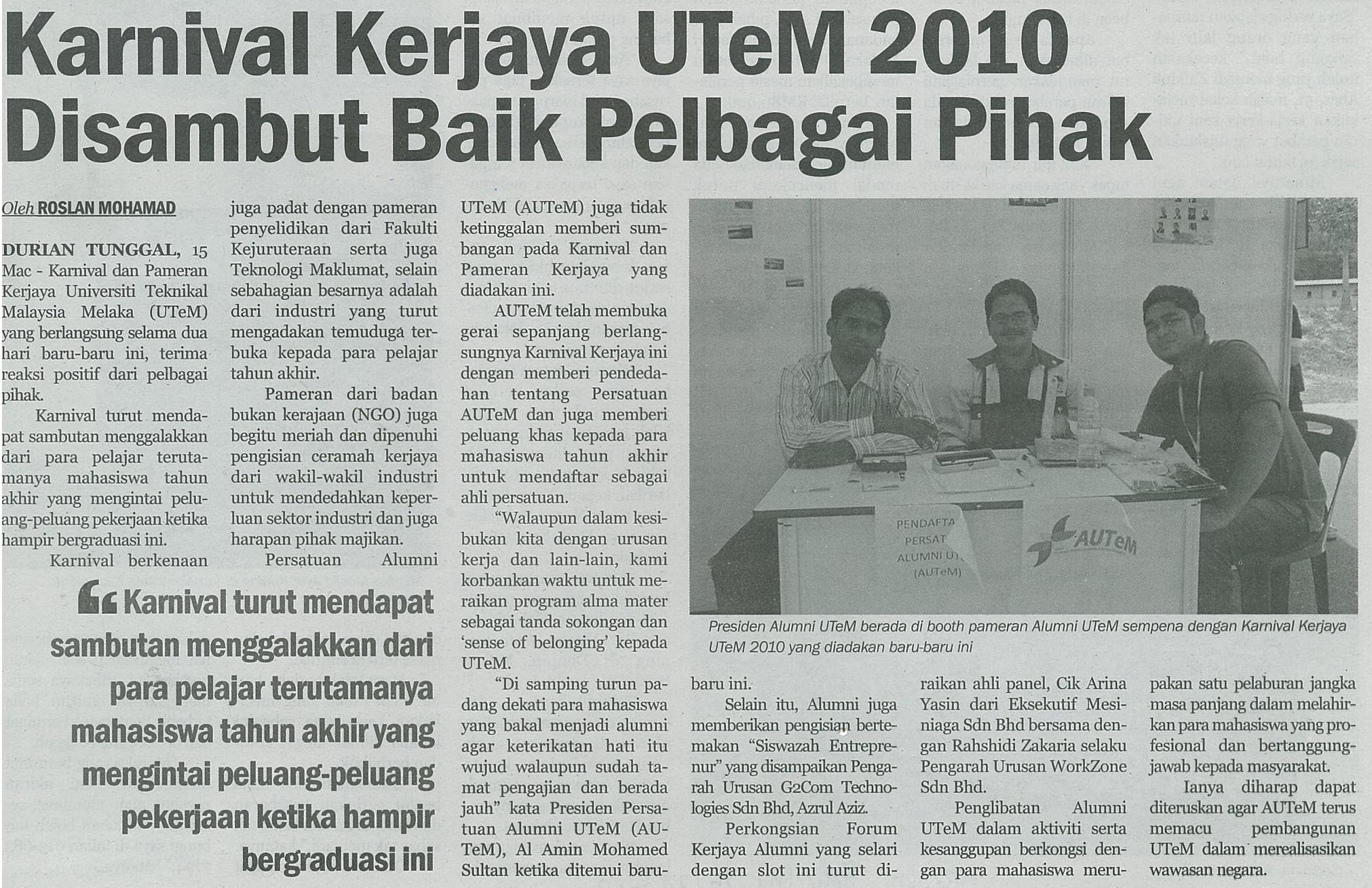 Karnival Kerjaya UTeM 2010 disambut baik pelbagai pihak
