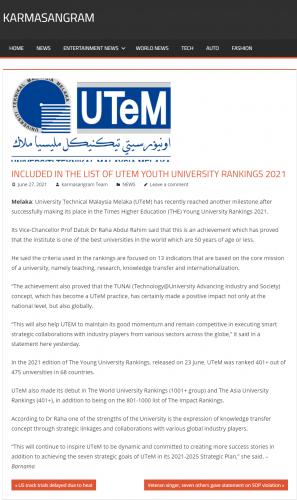 INCLUDED IN THE LIST OF UTEM YOUTH UNIVERSITY RANKINGS 2021