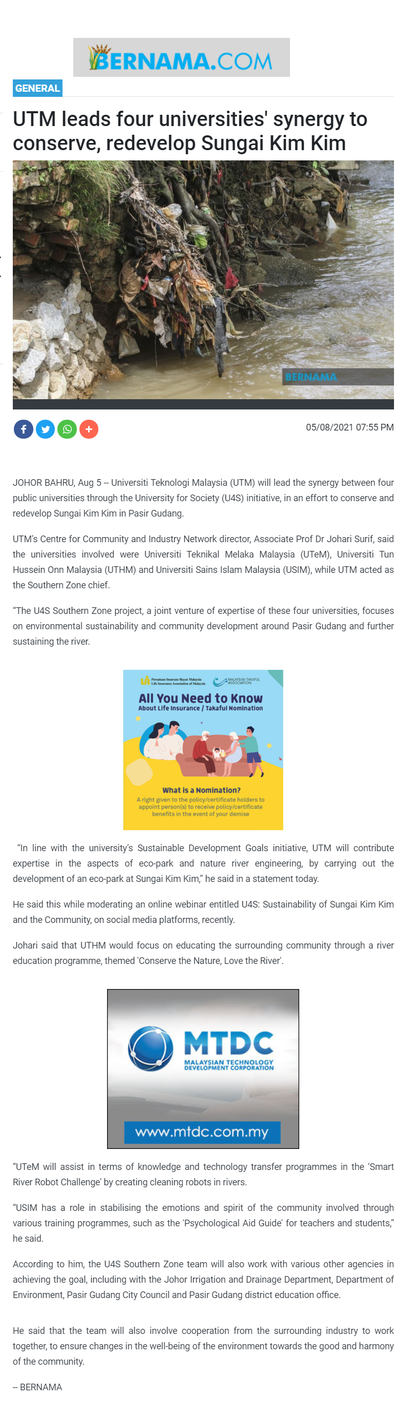 UTM leads four universities’ synergy to conserve, redevelop Sungai Kim Kim
