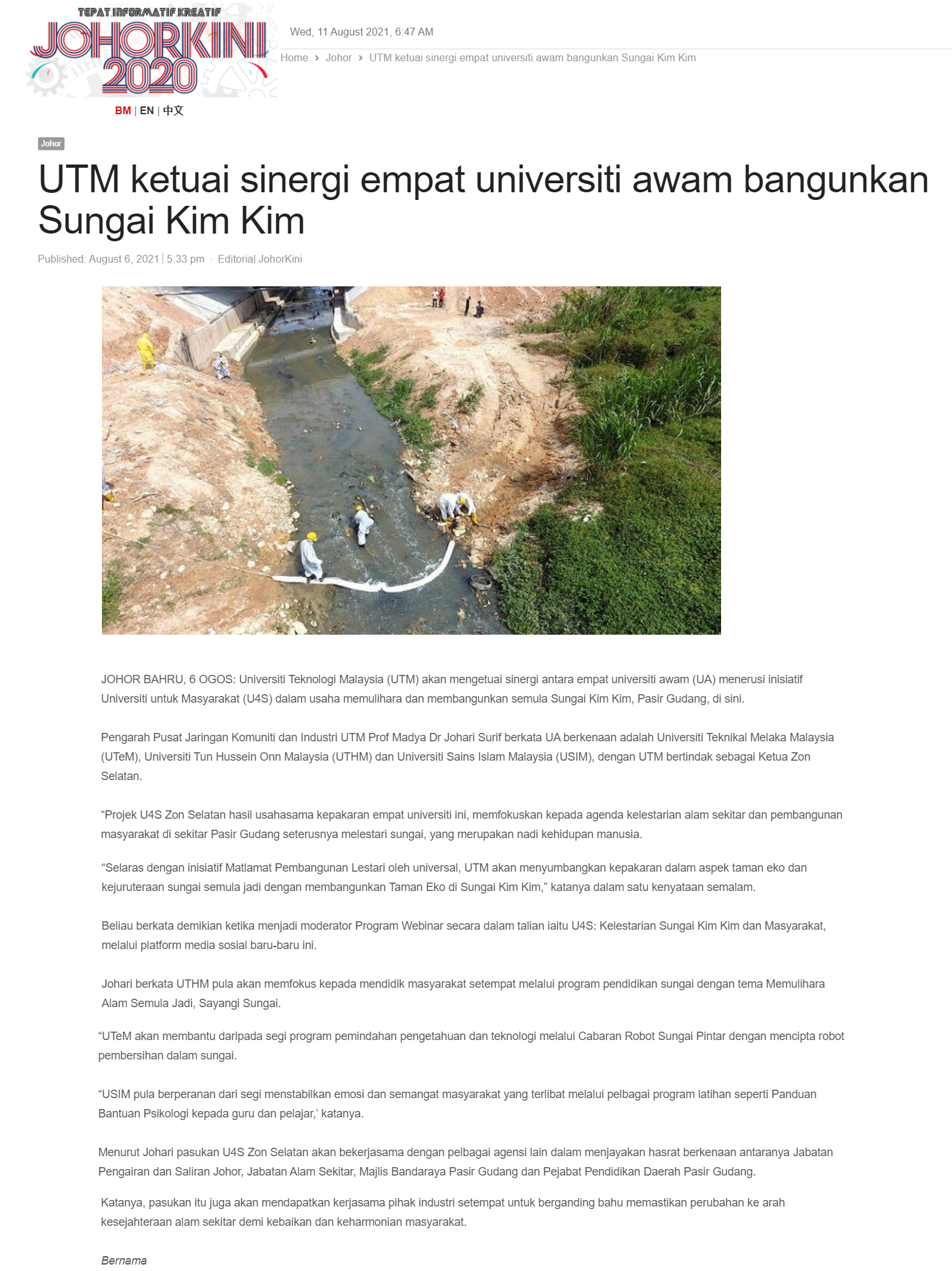 UTM ketuai sinergi empat universiti awam bangunkan Sungai Kim Kim