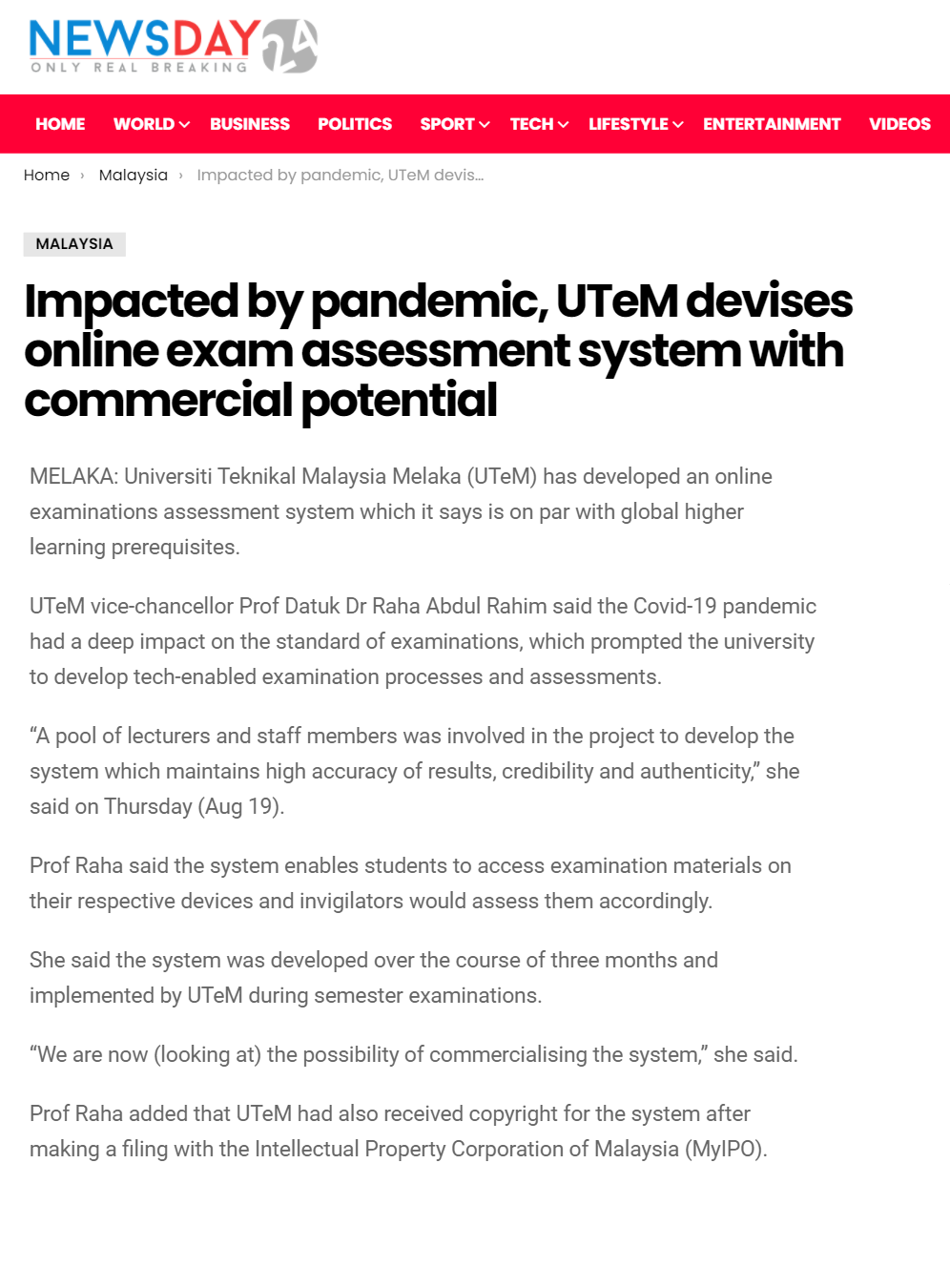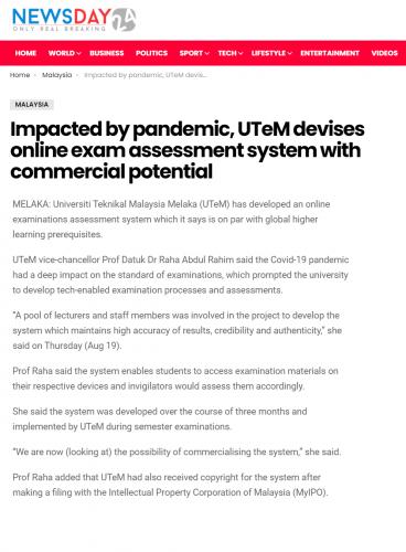 Impacted by pandemic, UTeM devises online exam assessment system with commercial potential