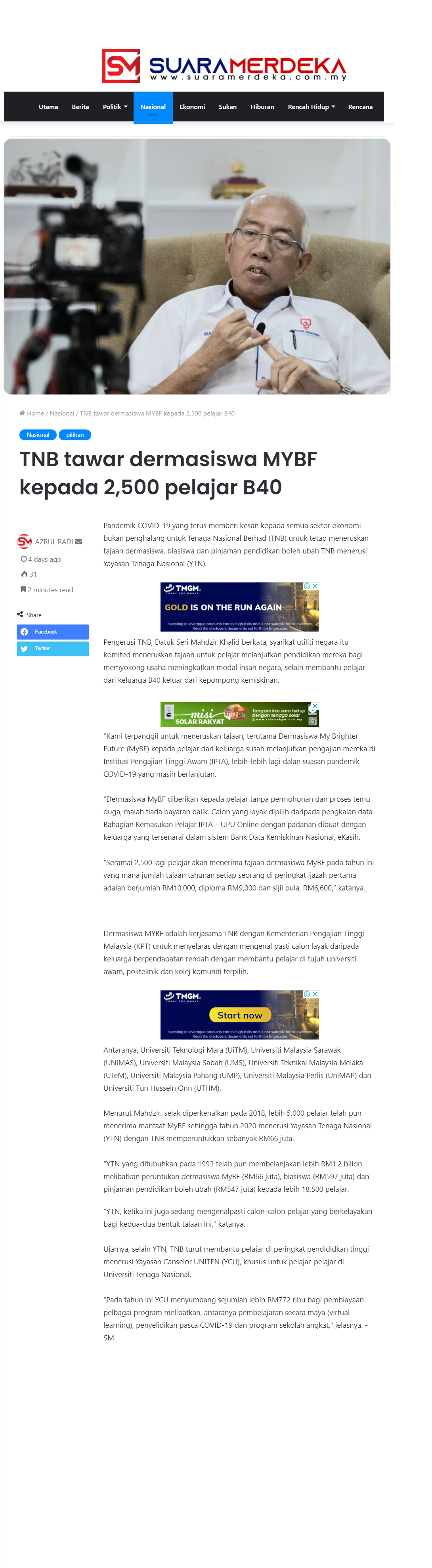 TNB tawar dermasiswa MYBF kepada 2,500 pelajar B40