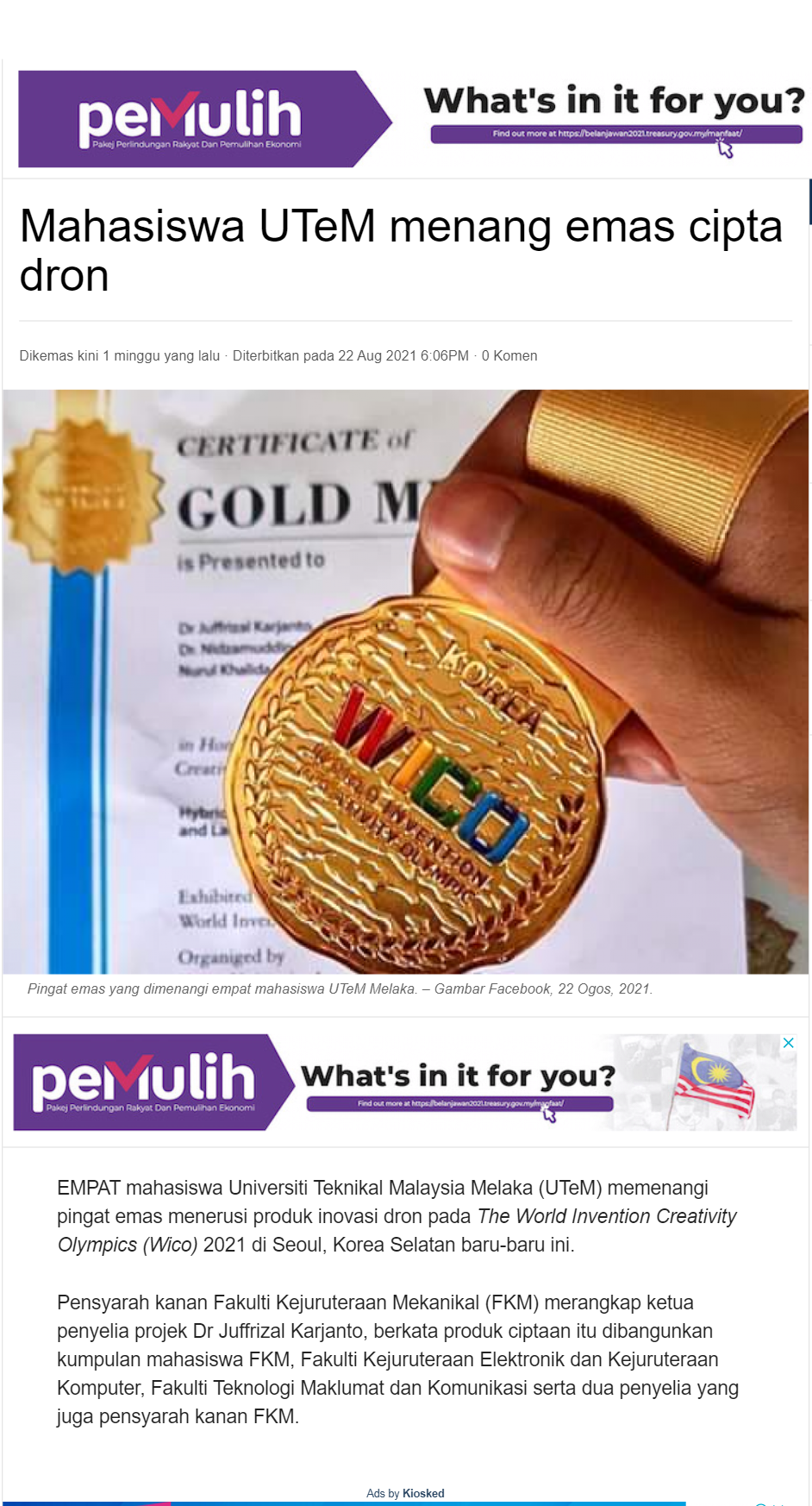 Mahasiswa UTeM menang emas cipta dron