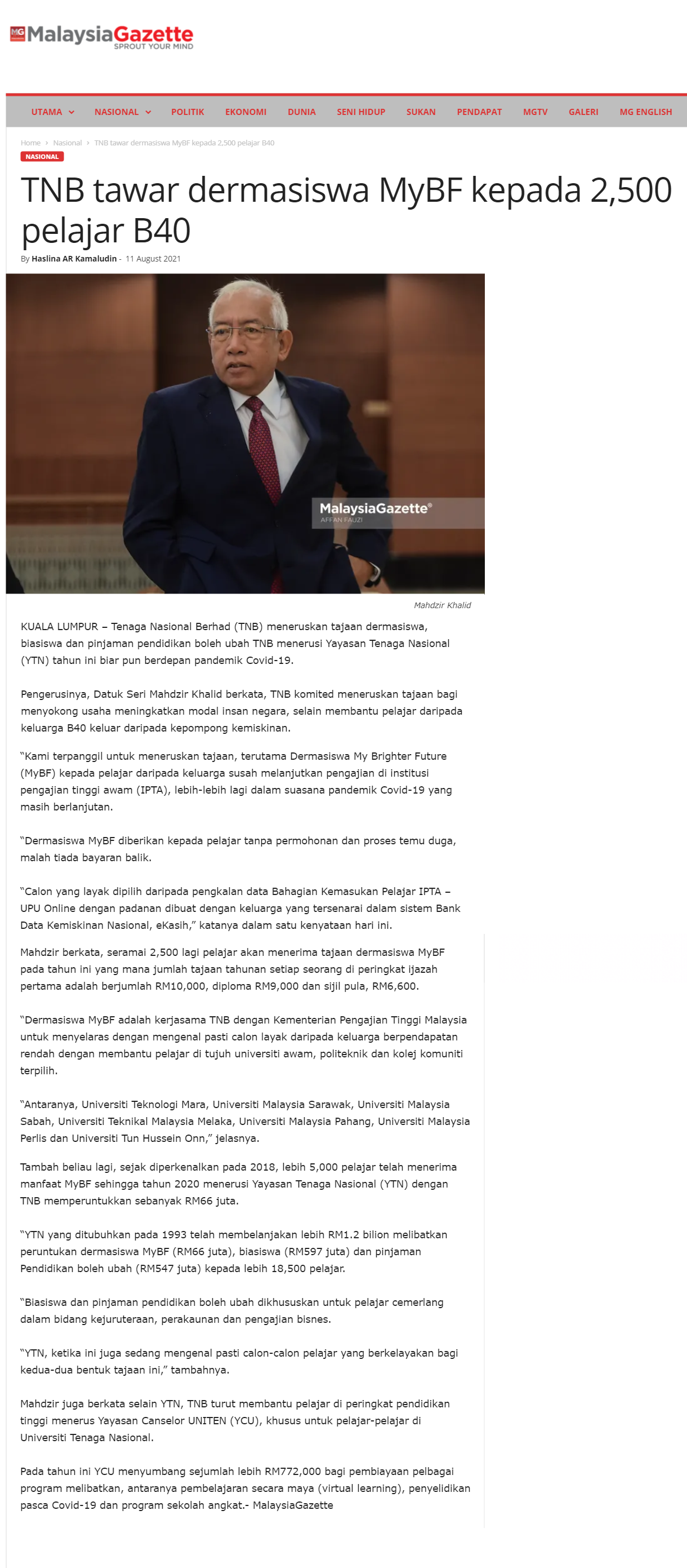 TNB tawar dermasiswa MyBF kepada 2,500 pelajar B40