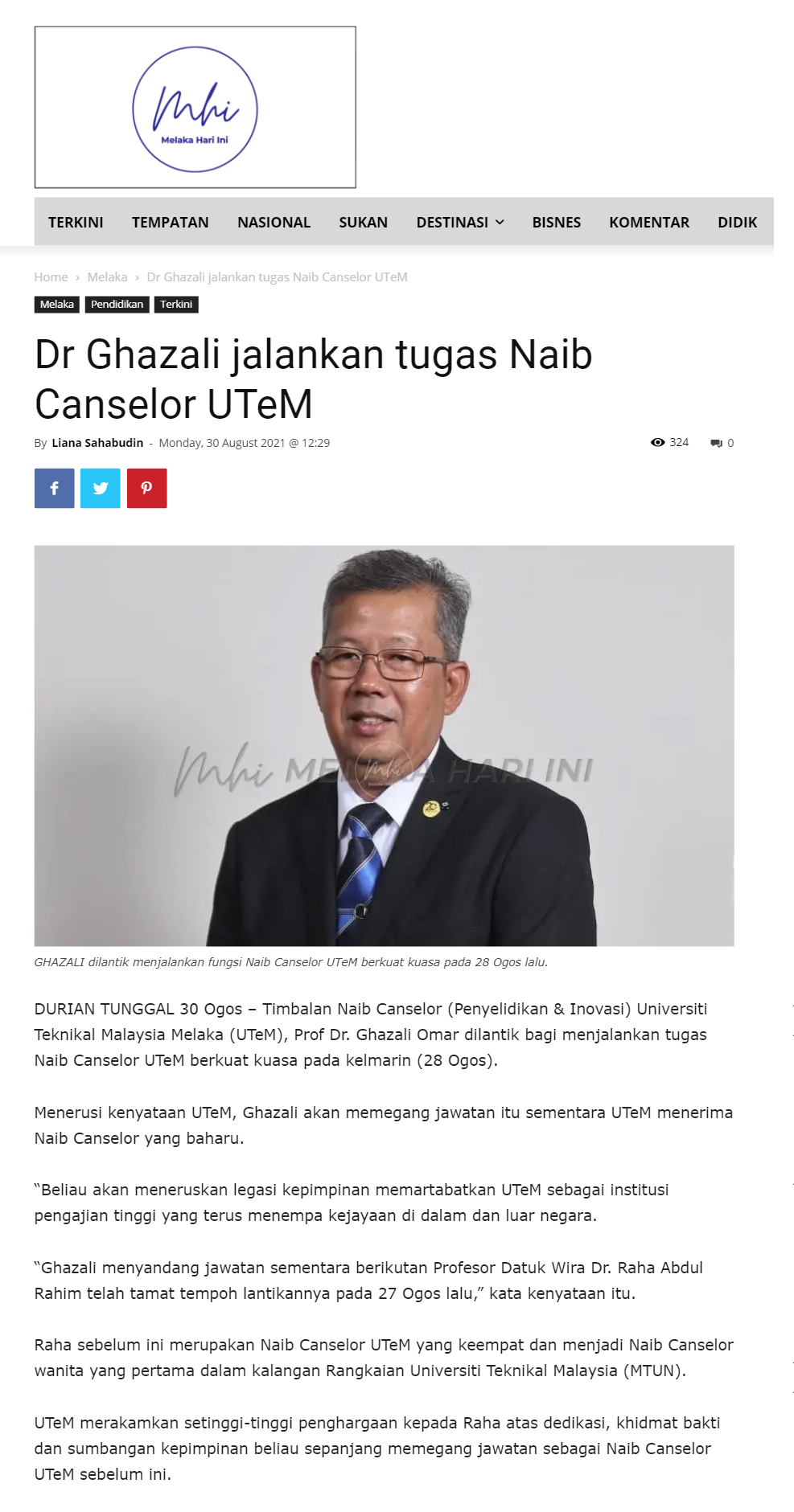 Dr Ghazali jalankan tugas Naib Canselor UTeM