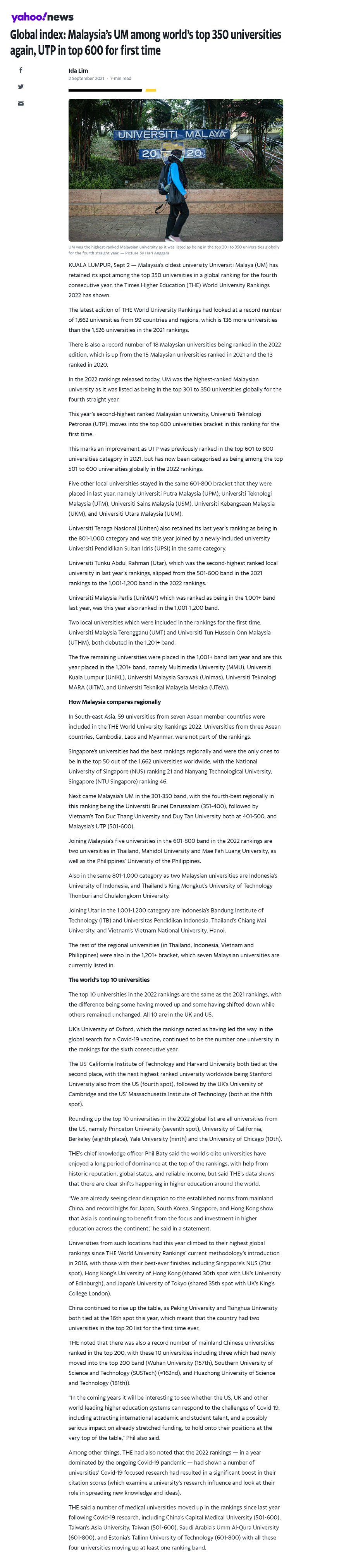 Global index: Malaysia’s UM among world’s top 350 universities again, UTP in top 600 for first time