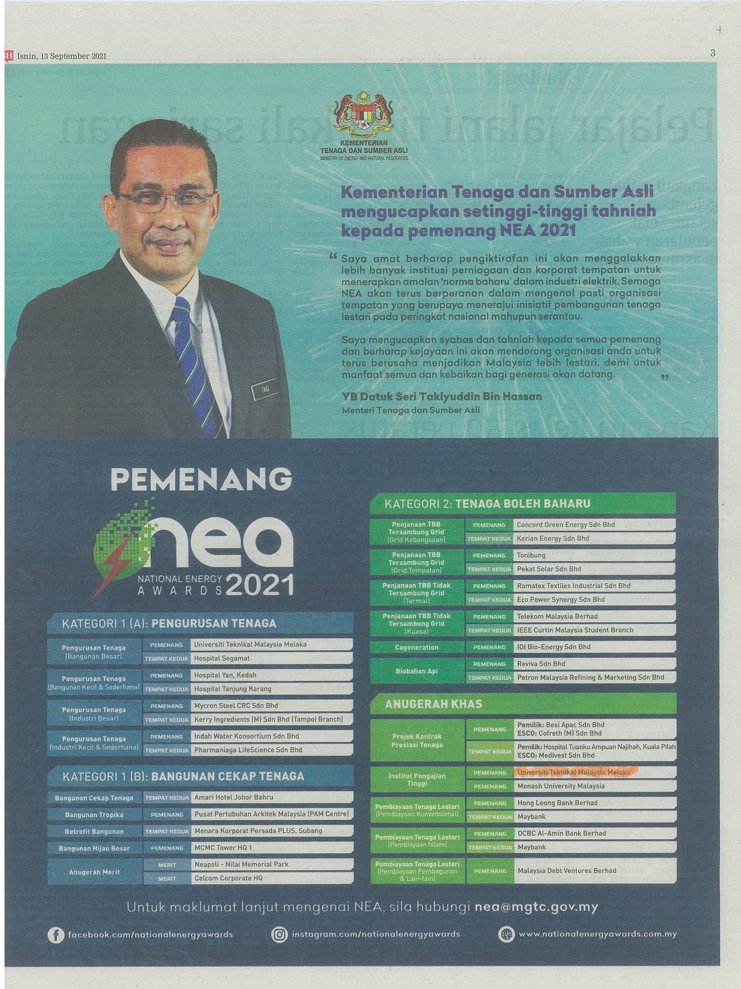 Pemenang National Energy Awards (NEA) 2021