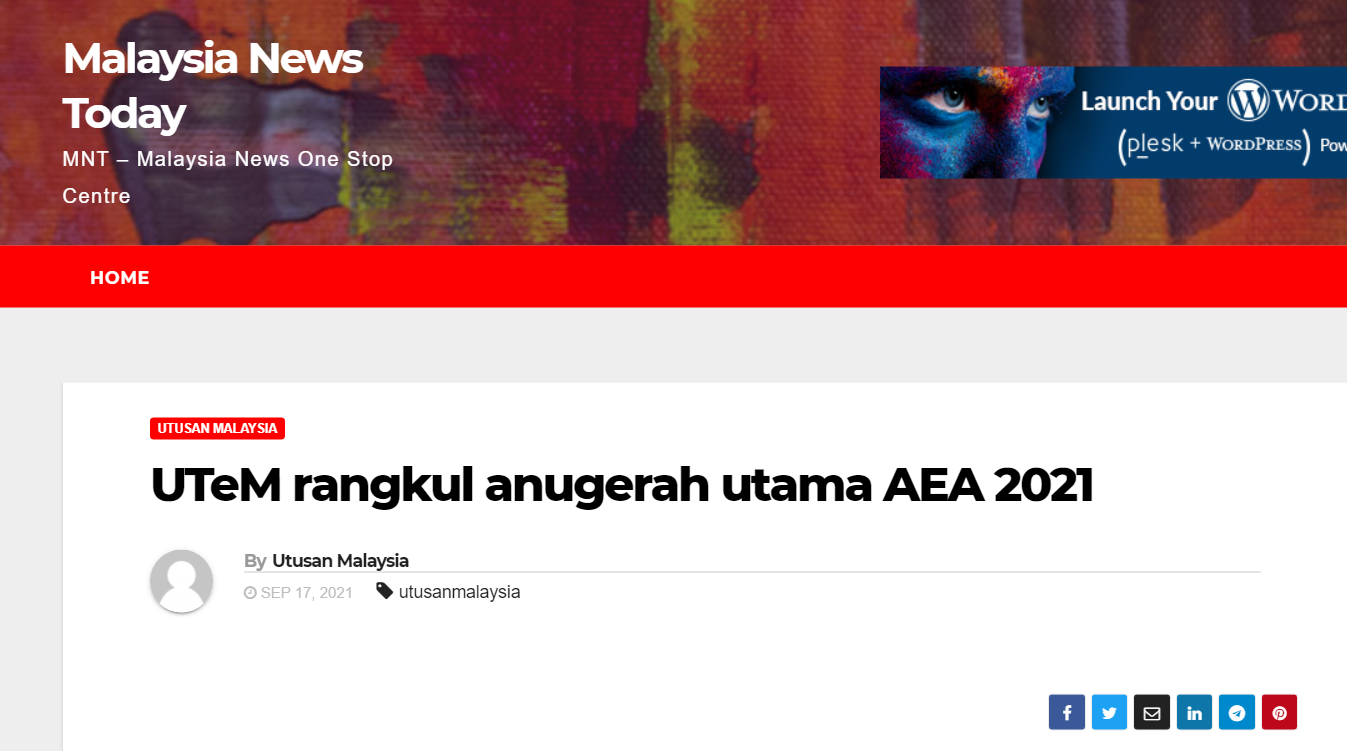 UTeM rangkul anugerah utama AEA 2021