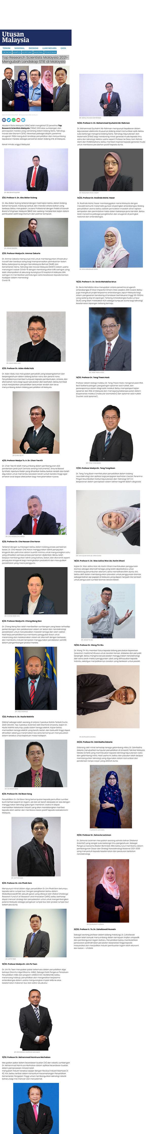 Top Research Scientists Malaysia 2021-Mengubah Landskap STIE di Malaysia