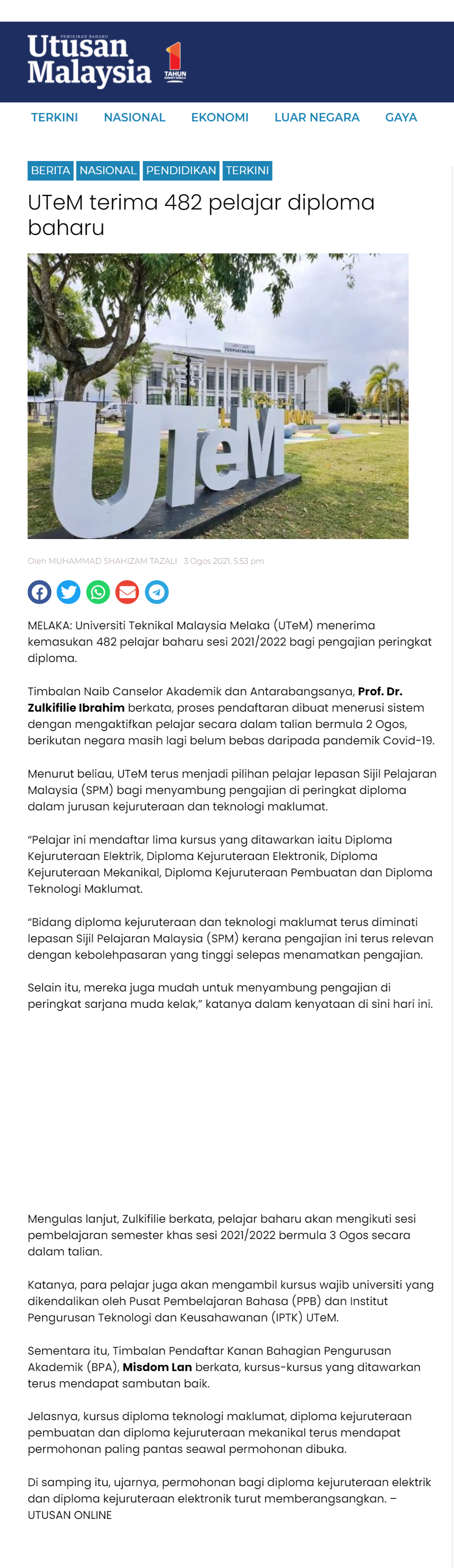 UTeM In Newspapers