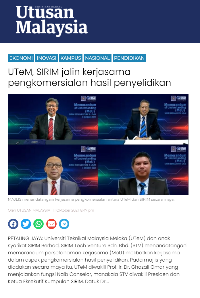 UTeM, SIRIM jalin kerjasama pengkomersialan hasil penyelidikan