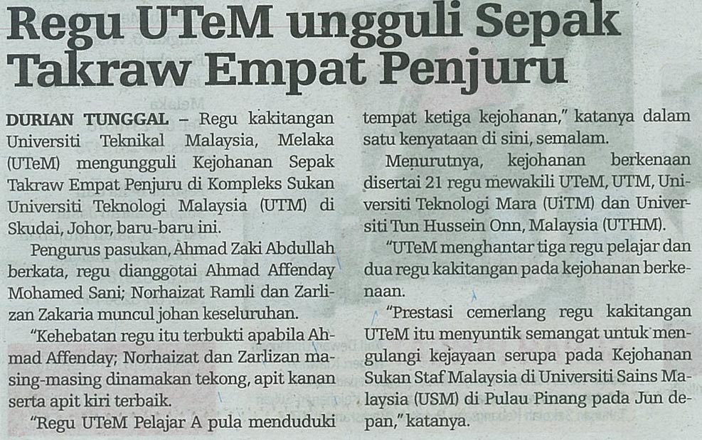 Regu UTeM ungguli sepak takraw empat penjuru
