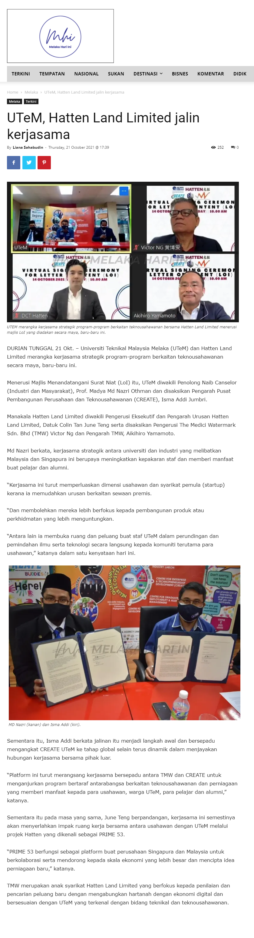 UTeM, Hatten Land Limited jalin kerjasama