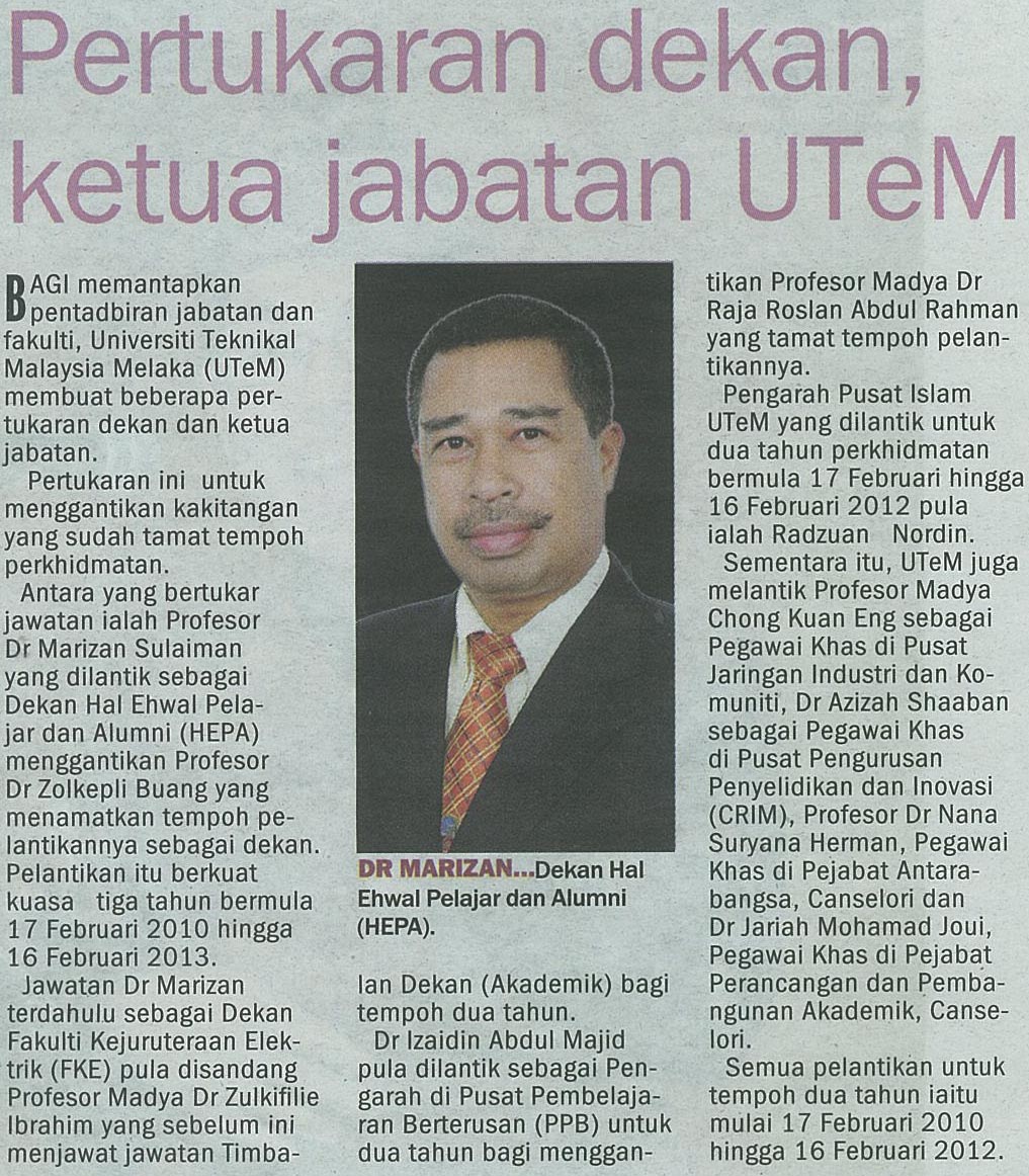 Pertukaran dekan, ketua jabatan UTeM