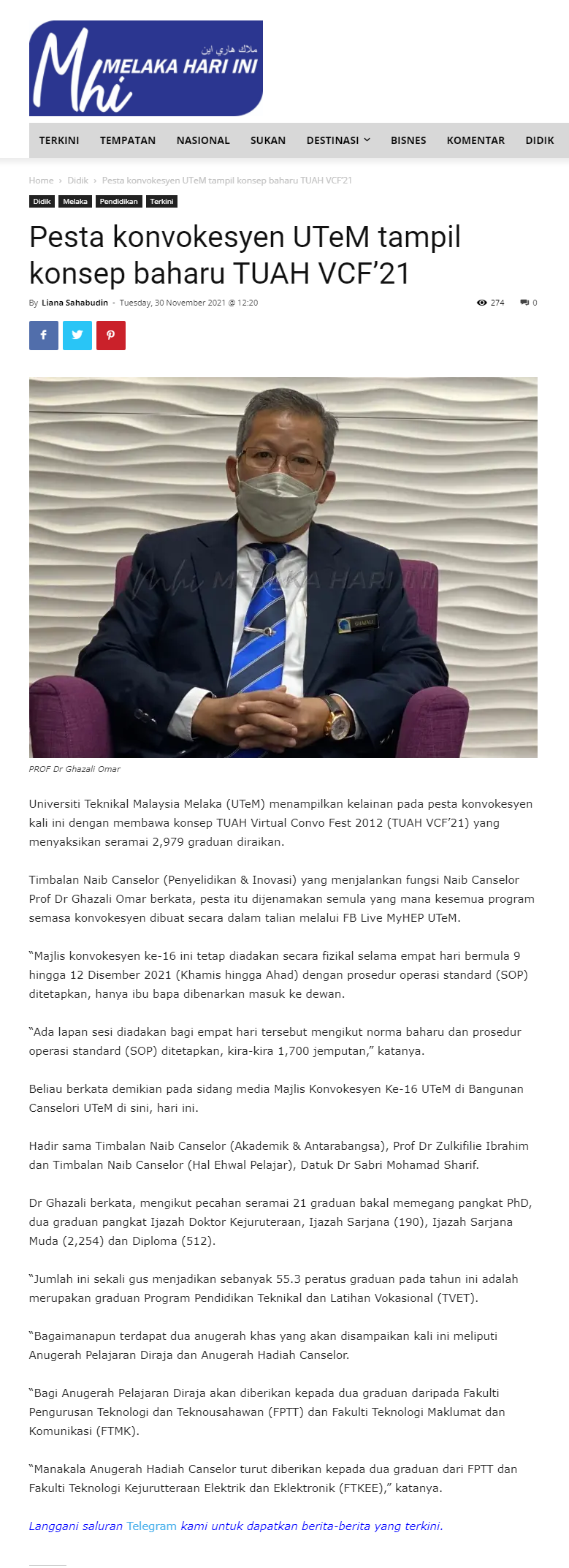 Pesta konvokesyen UTeM tampil konsep baharu TUAH VCF’21