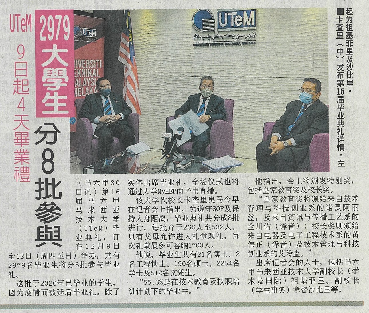 UTeM akan mengadakan convocation pada 9th Dec (4hari), 2979 students (8 kumpulan)