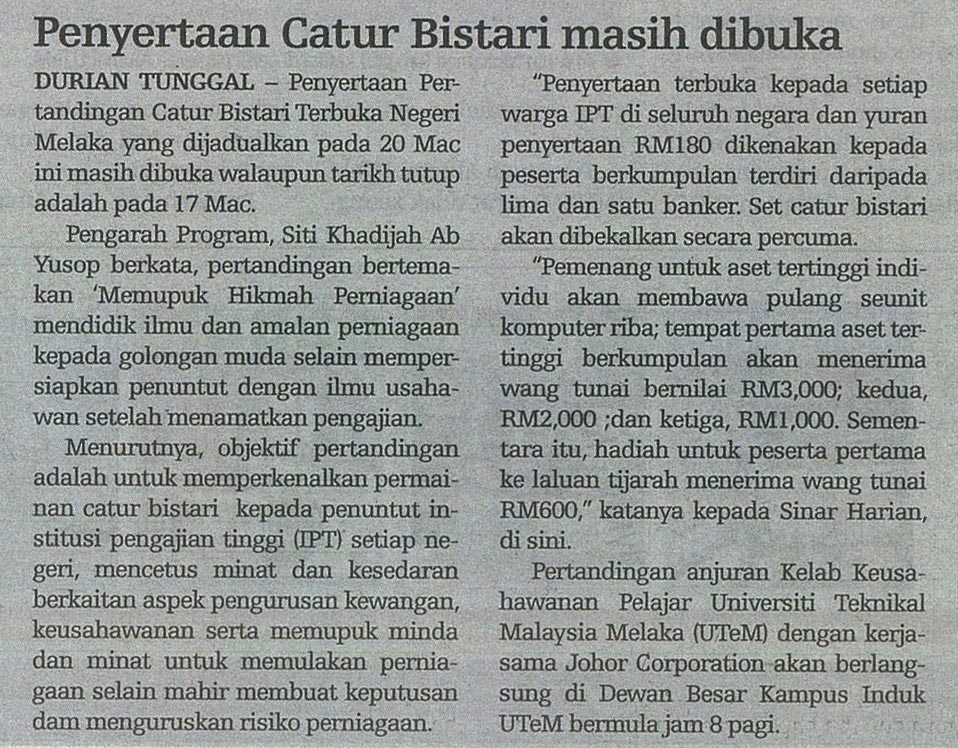 Penyertaan Catur Bistari masih dibuka