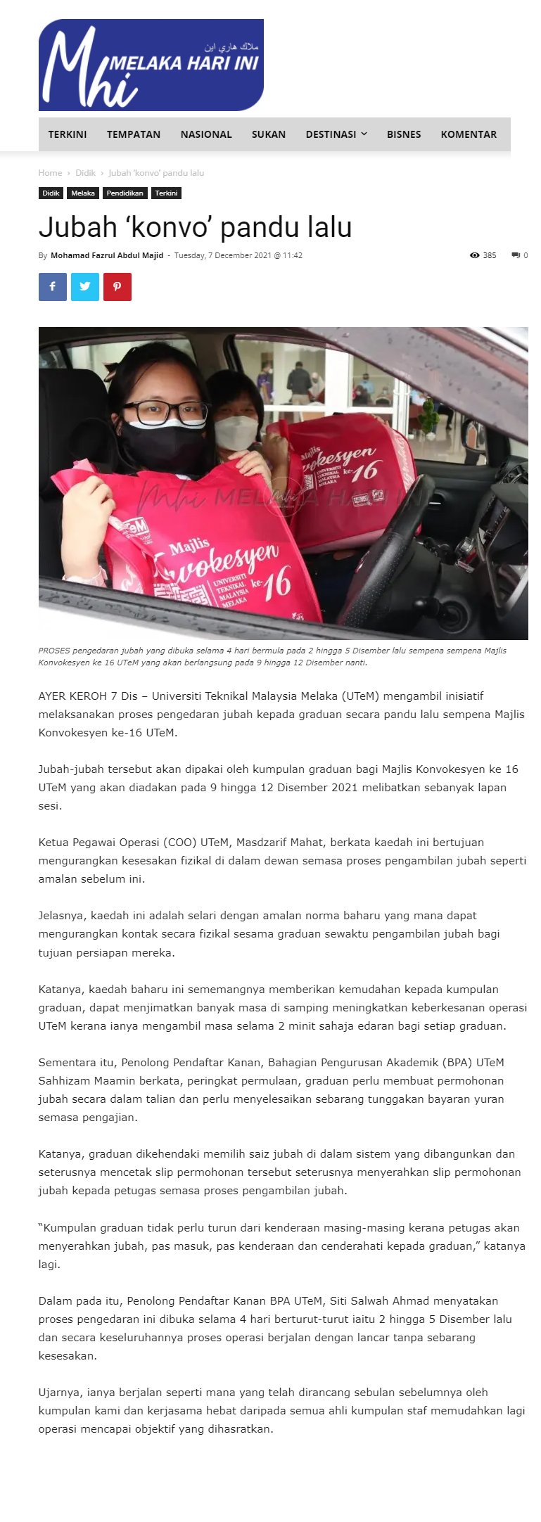 UTeM In Newspapers