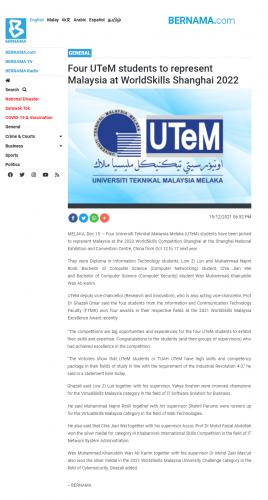 Four UTeM students to represent Malaysia at WorldSkills Shanghai 2022