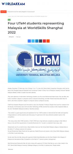 Four UTeM students representing Malaysia at WorldSkills Shanghai 2022