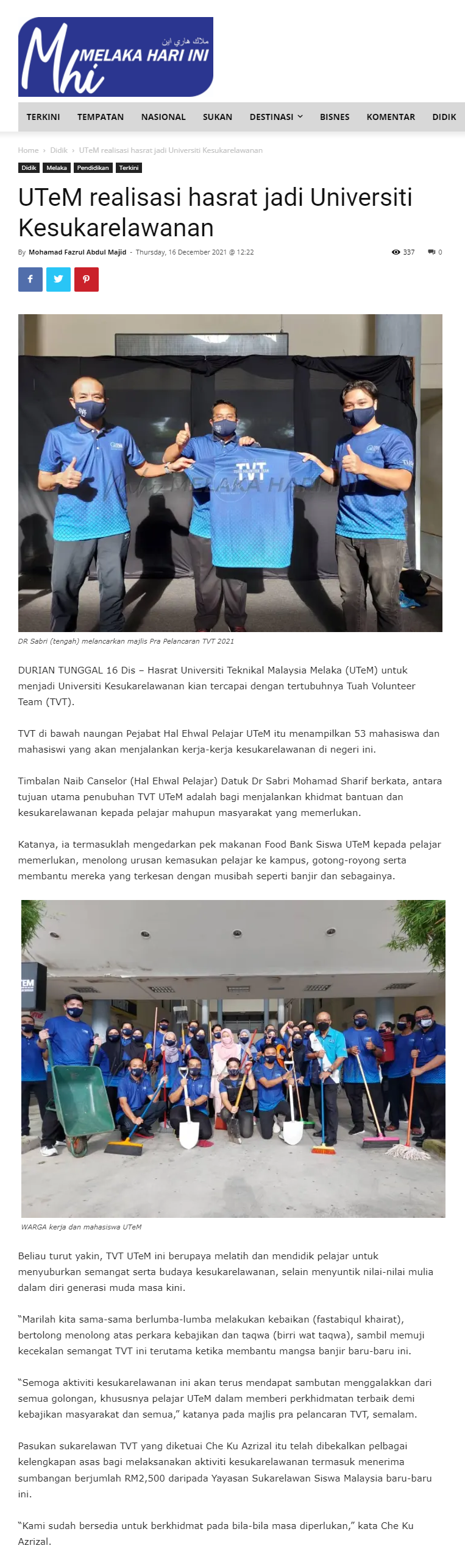 UTeM realisasi hasrat jadi Universiti Kesukarelawanan