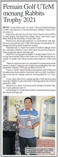 Pemain Golf UTeM memang Rabbits Trophy 2021